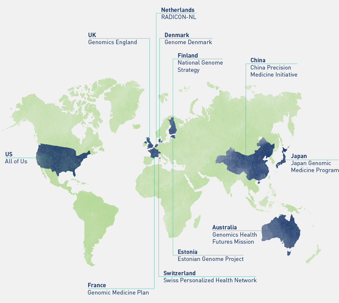 To help harness the benefits of precision medicine for their people, governments around the world have initiated national genomics programmes.